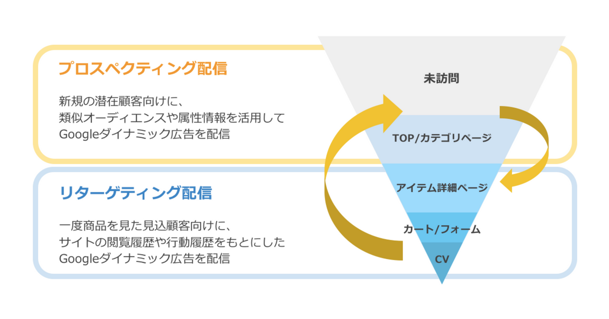 これにより、リターゲティングのみならず、サイト未訪問の潜在顧客へGoogleダイナミック広告の配信が可能になる。