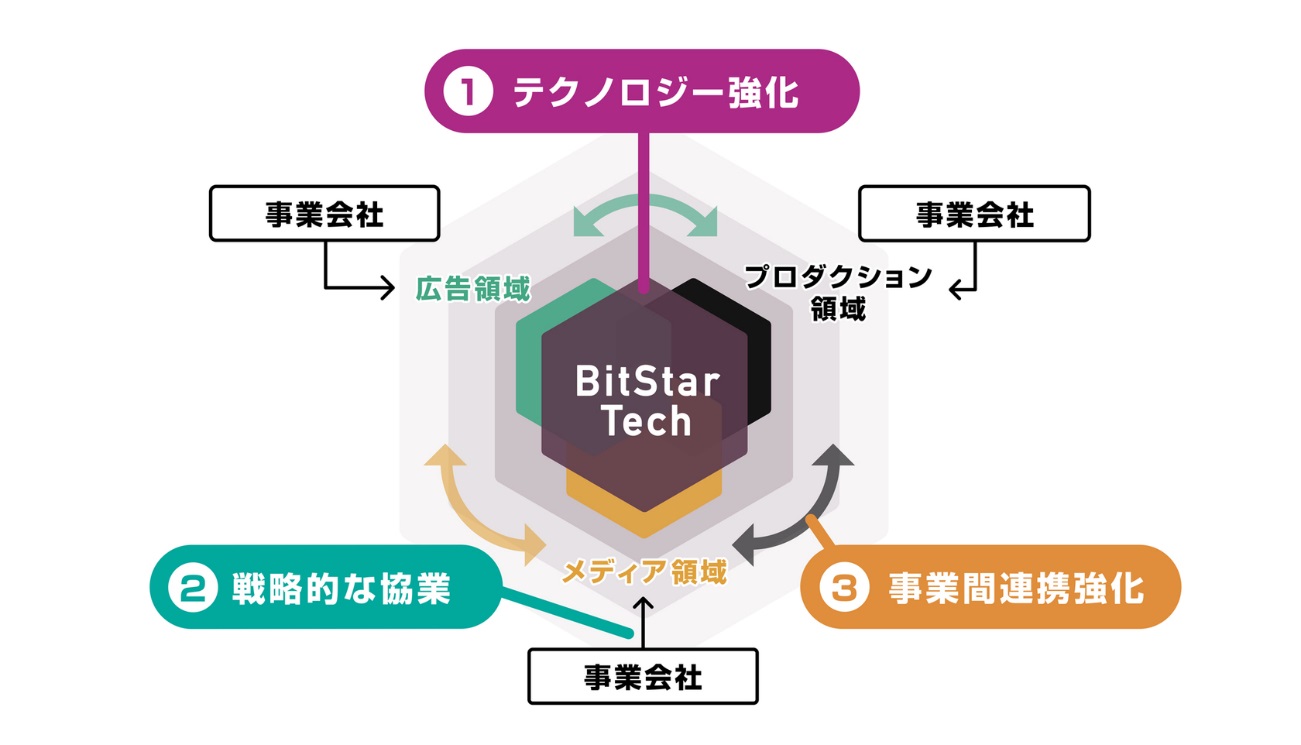 これにより、サービスインフラである、広告、プロダクション、メディア制作の3領域とテクノロジーや各事業の人材強化を図っていく。