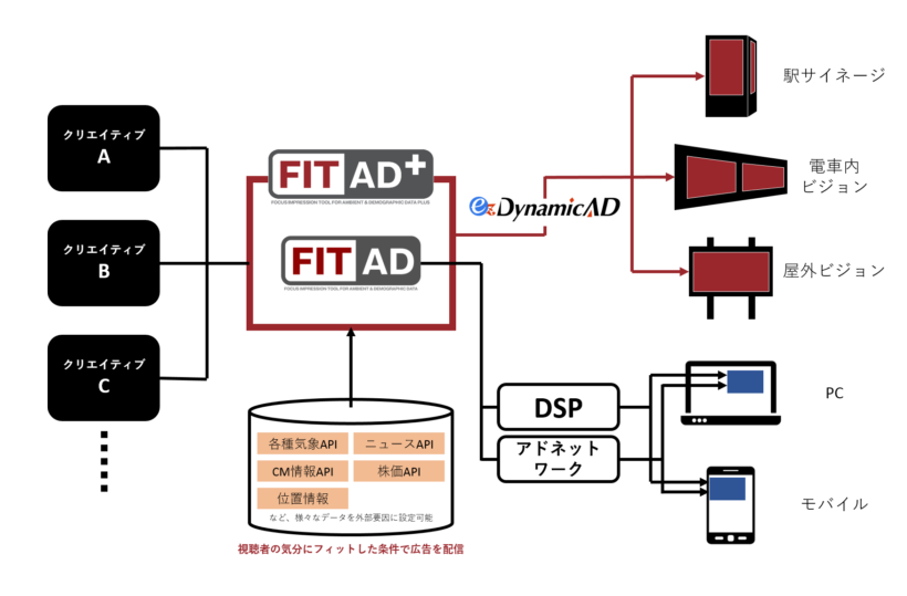 博報堂DYメディアパートナーズ、株式会社博報堂DYアウトドア、クラフターの博報堂DYグループ3社とヒトクセは、生活者を取り巻くアンビエント(環境)データを取り入れ、生活者の気持ちにフィットしたデジタル広告を自動で出し分けるソリューション「FIT AD」に、デジタルアウトドア広告への配信機能を加えた「FIT AD+(プラス)」を開発し、提供を開始した。