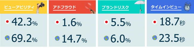 ※いずれもデスクトップ ディスプレイの数値。アドフラウド / 不正インプレッションの日本の数値は最適化数値、グローバル数値は非最適化数値。