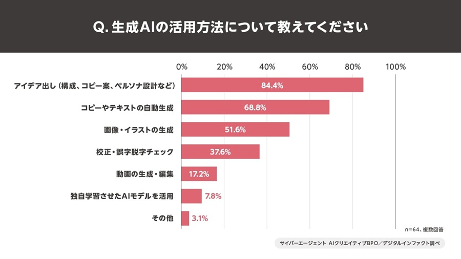 サイバーエージェントはデジタルインファクトと共同で「大手広告主企業のクリエイティブ制作における生成AIの利活用に関する実態調査」を実施した。