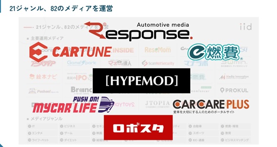 山本氏:イードでは現在、21ジャンル・82のメディアを運営しています。ほとんどがWebメディアですが、一部紙媒体の雑誌もあり、取り扱うジャンルは自動車、ゲーム、アニメ、映画、教育、お酒など幅広く、すべてがバーティカルメディアとして特化しています。私はその中で7つのメディアを担当しており、特に自動車関連メディア『レスポンス』が最大規模です。最近ではロボット情報メディア『ロボスタ』も担当しています。自動車とロボットは技術的な親和性が高く、メディア横断での提案も行っています。
