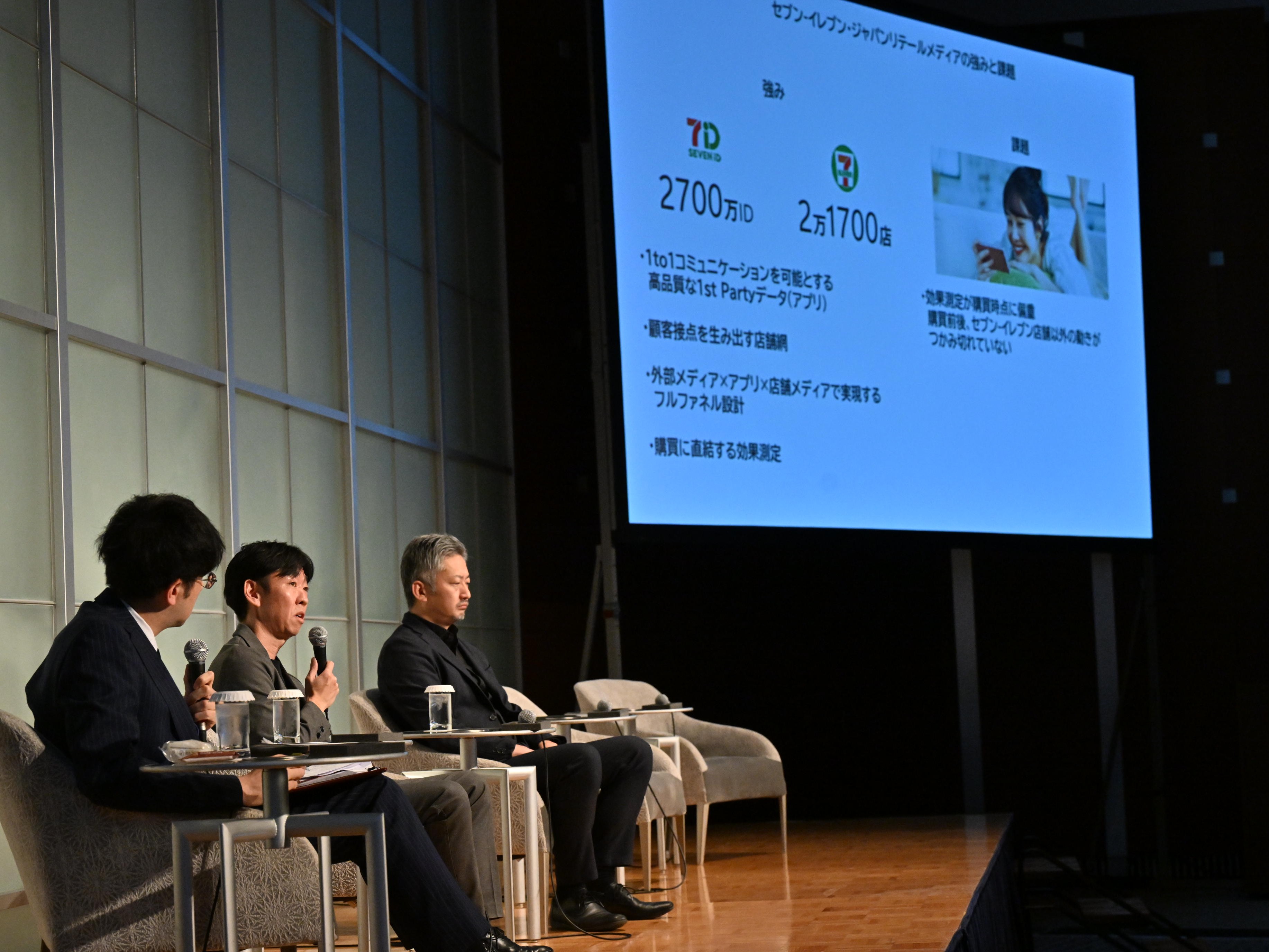 セッションでは、セブン‐イレブンの商品における「ライスイノベーションプロジェクト」の一環として八代目儀兵衛の知見、商品パッケージを含むリアル店舗におけるリテールメディアの構造変化、店頭起点でのブランド体験拡張、さらにセブンカフェを活用した広告検証事例などをもとに、商品・店舗・空間をメディアとして再定義する取り組みが議論された。
