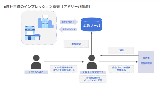 売上連動型の手数料モデルを適用いただいているためリスクも小さく、自社商品においては最低出稿金額のハードル低下など、料金設定に柔軟性が生まれ、よりターゲットを明確にした商品設定ができるようになりました。その結果、全国規模の案件創出が期待できる 「DSP経由でのプログラマティック取引(SSP商流)」と、大阪エリアにおける多様なプロモーション需要に応えられる「自社主導のインプレッション販売(アドサーバ商流)」という形で、両チャネルの役割分担を明確にできたと考えています。
