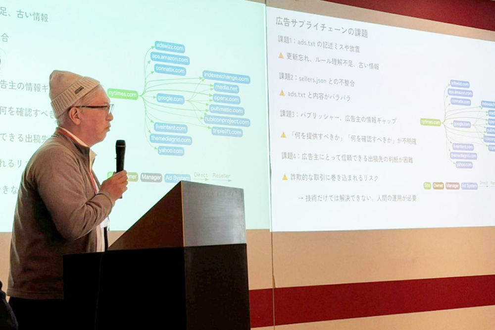 ダイレクト取引(非プログラマティック)は広告主とパブリッシャーの二者間で完結するため、構造的に透明性が高い。菊池氏は「プログラマティック広告の健全性を高めることに加え、非プログラマティックの取引量を増やすことで業界全体の透明性と健全性を底上げできる」と提起した。